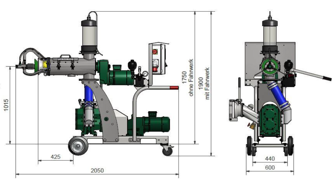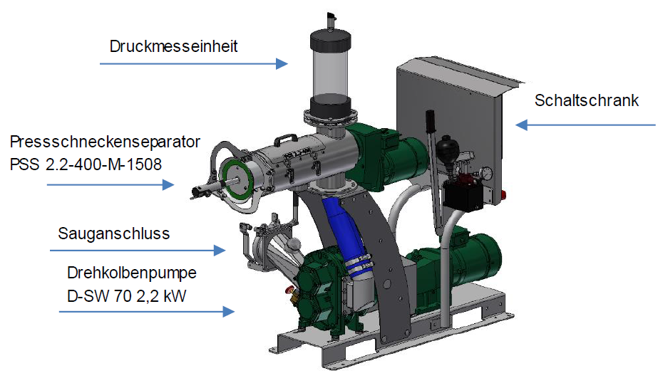 - Drehkolbenpumpe mit 2,2 kW Getriebemotor (Saugseite)