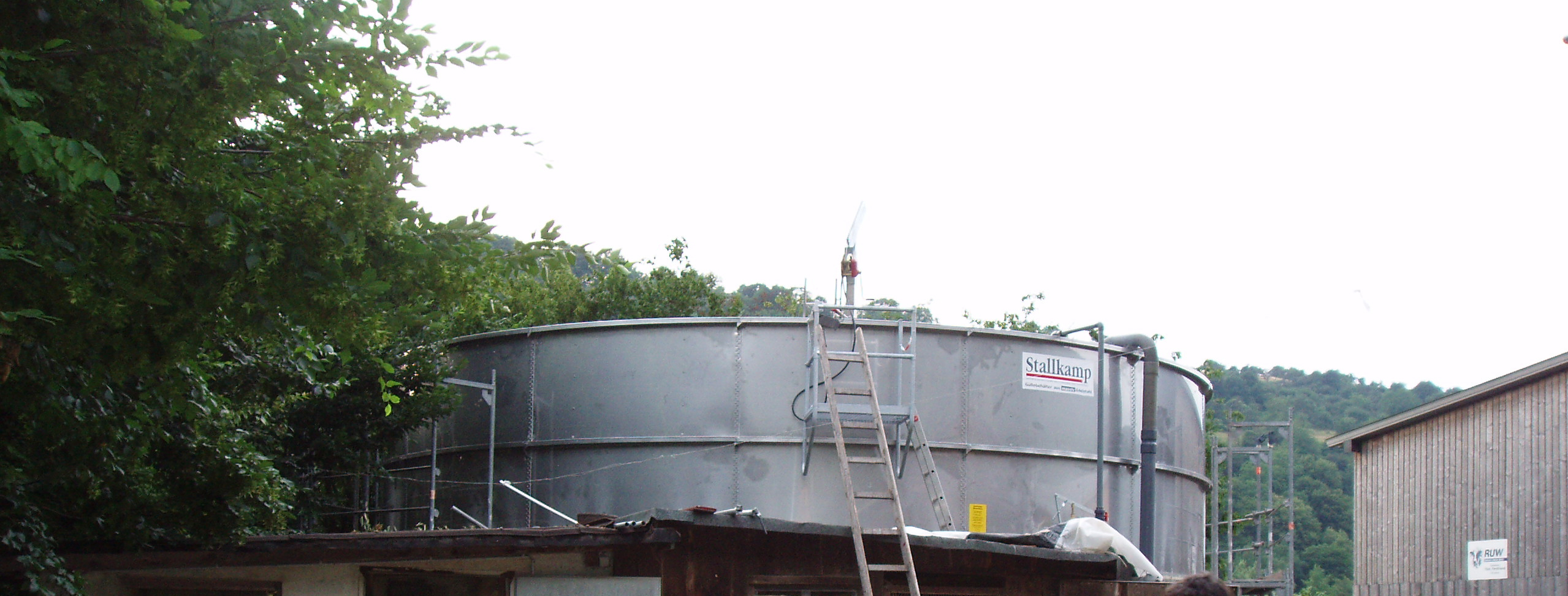 Ein Güllelager aus Glattstahl für einen Milchviehbetrieb mit einem eigenen Hofladen in Rheinland-Pfalz. Ursprünglich gebaut wurde das Güllelager aus Beton im Juni 2007. Ende 2013 / Anfang 2014 fand ein Umbau statt – das bestehende Güllelager wurde um ca. 240 m³ erweitert.