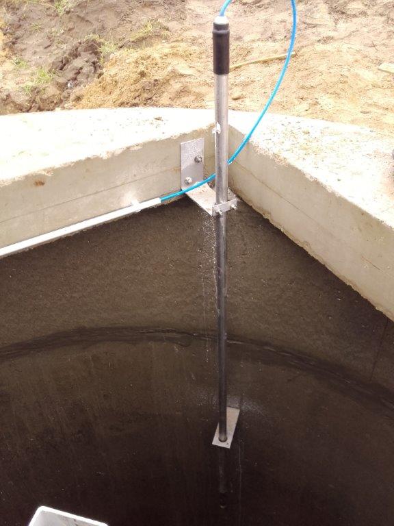 Die Grube hat eine Tiefe von 3,10m. In der Vorgrube wird nicht nur die Gülle gesammelt und gemischt. Hinzu kommt die Oberflächenentwässerung einer Fahrsiloanlage. Das bedeutet, dass auch Regenwasser und eventuell anfallender Silosickersaft in der Vorgrube aufgefangen wird. Das zusätzliche Wasser bzw. der Sickersaft lassen die eigentliche Gülle verwässern und dünner werden, wodurch sie noch pumpfähiger wird.