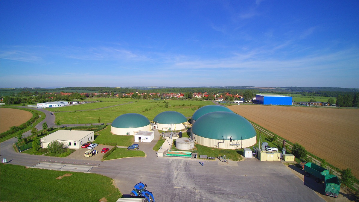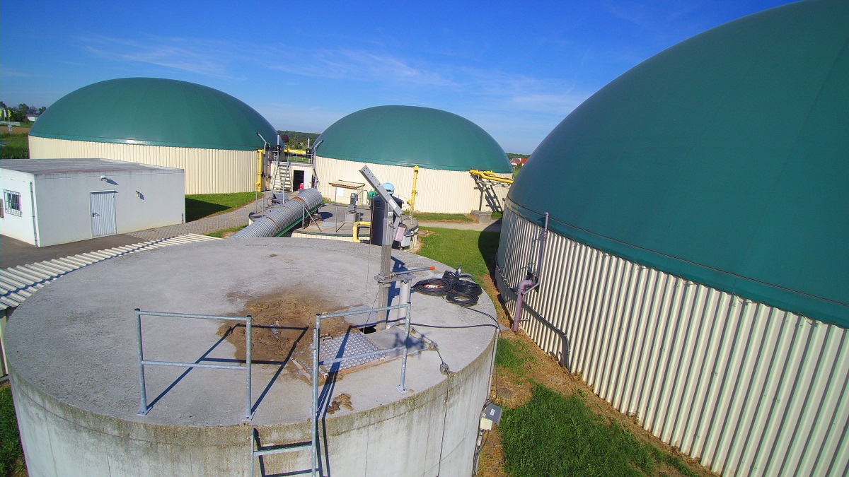 Auf dieser Referenzanlage, der Biogasanalage in Naumburg (Sachsen-Anhalt), werden zuverlässige Pumpen und Biogasrührwerke von Stallkamp eingesetzt. Im Nachgärer sind zwei Tauchmotor-Rührwerke (TMR) und eine Tauchmotorpumpe (TMP) verbaut. Bei der Rührwerkstechnik handelt es sich um das Biogasrührwerk TMR3M mit einer Leistung von 17kW. Es erreicht eine hohe Umwälzmenge, sodass eine gute Durchmischung gewährleistet ist und die Temperaturunterschiede ausgeglichen werden. Voraussetzung für den Einsatz dieses Rührwerks ist ein stetiger Füllstand des Gärbehälters. Das Substrat läuft über einen Freispiegelüberlauf in das Gärrestlager. Die Tauchpumpe TMP dient der Fassbefüllung, sofern Material ausgebracht werden soll.