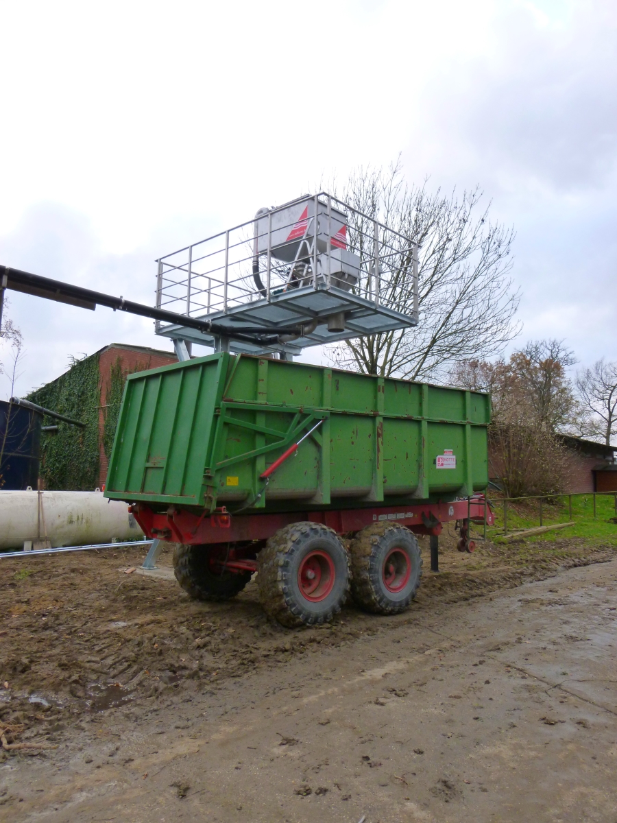 Die bisherige Erfahrung zeigt, dass die Separation von Schweinegülle gut funktioniert. In diesem Fall werden die Mastschweine mit CCM und Getreide gefüttert und das Ergebnis ist sehr zufriedenstellend! Auch die Durchsatzleistung stimmt bei diesem Separator, denn nach ca. 1,5 Tagen ist der Kippanhänger voll.